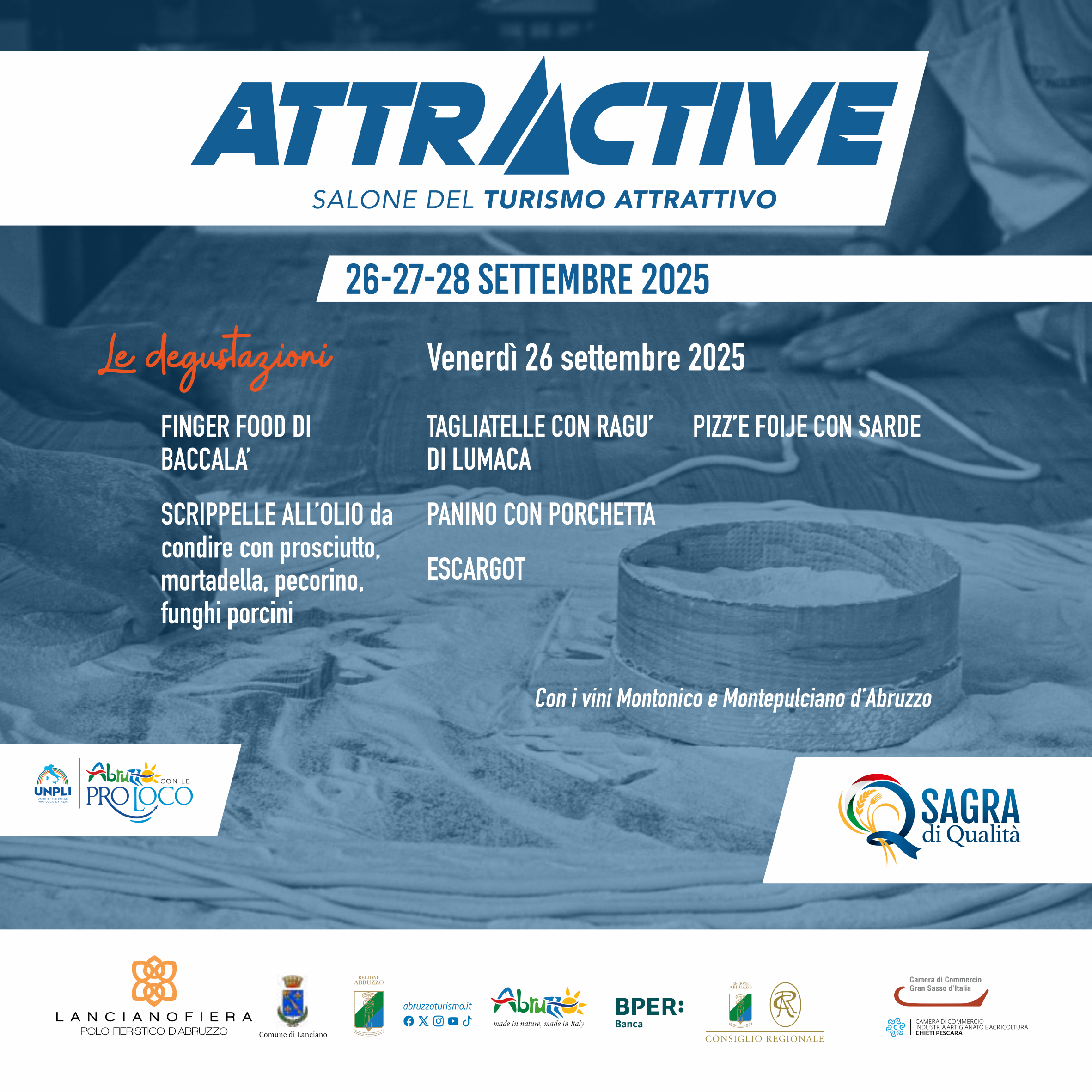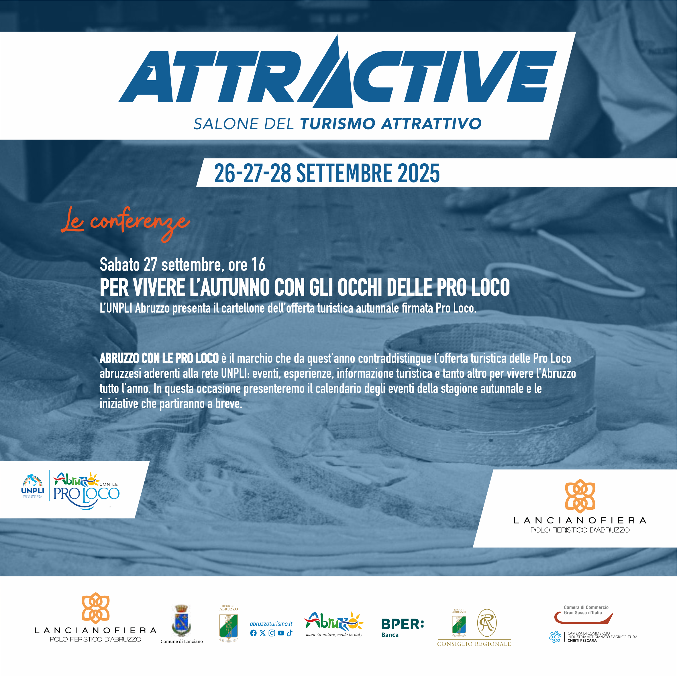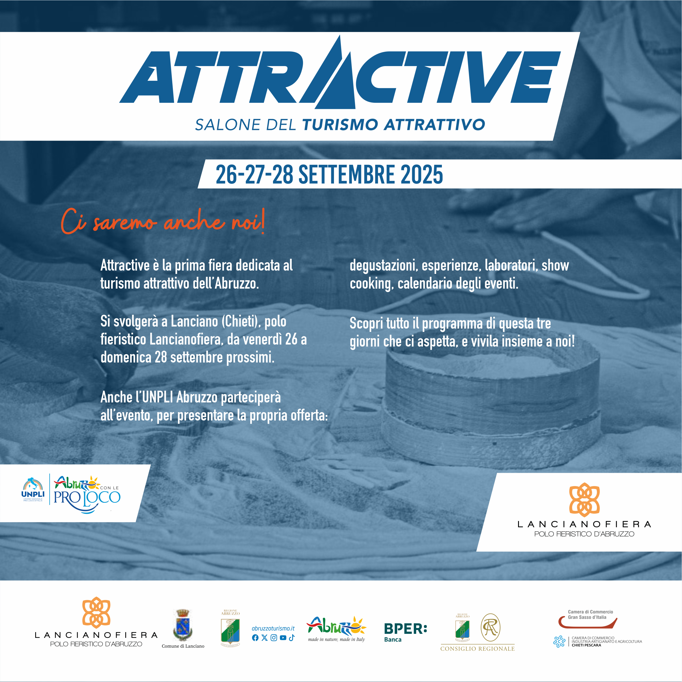 Attractive è la prima fiera dedicata al turismo attrattivo dell’Abruzzo. E’ in programma a Lanciano (Chieti), polo fieristico Lancianofiera, da venerdì 26 a domenica 28 settembre prossimi.