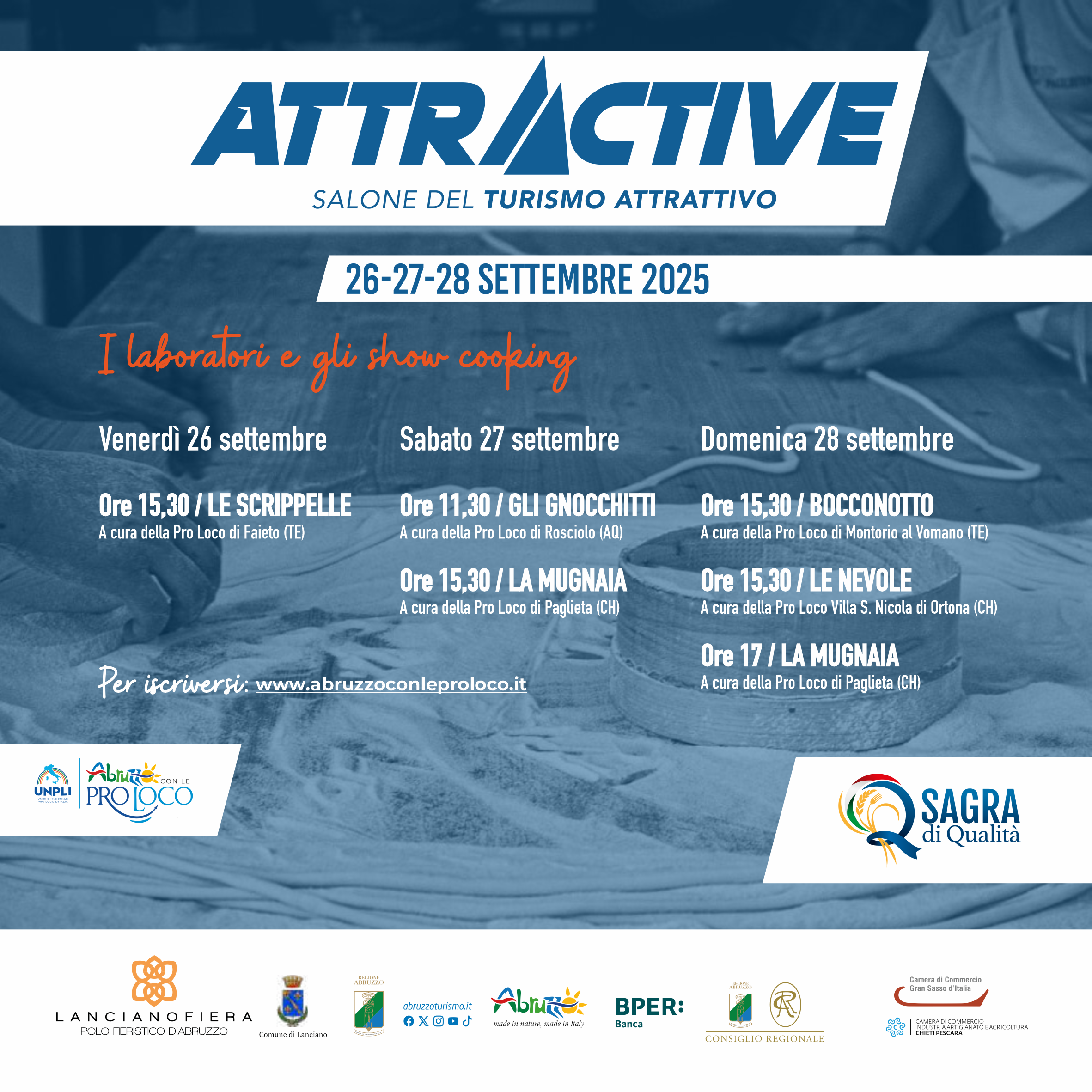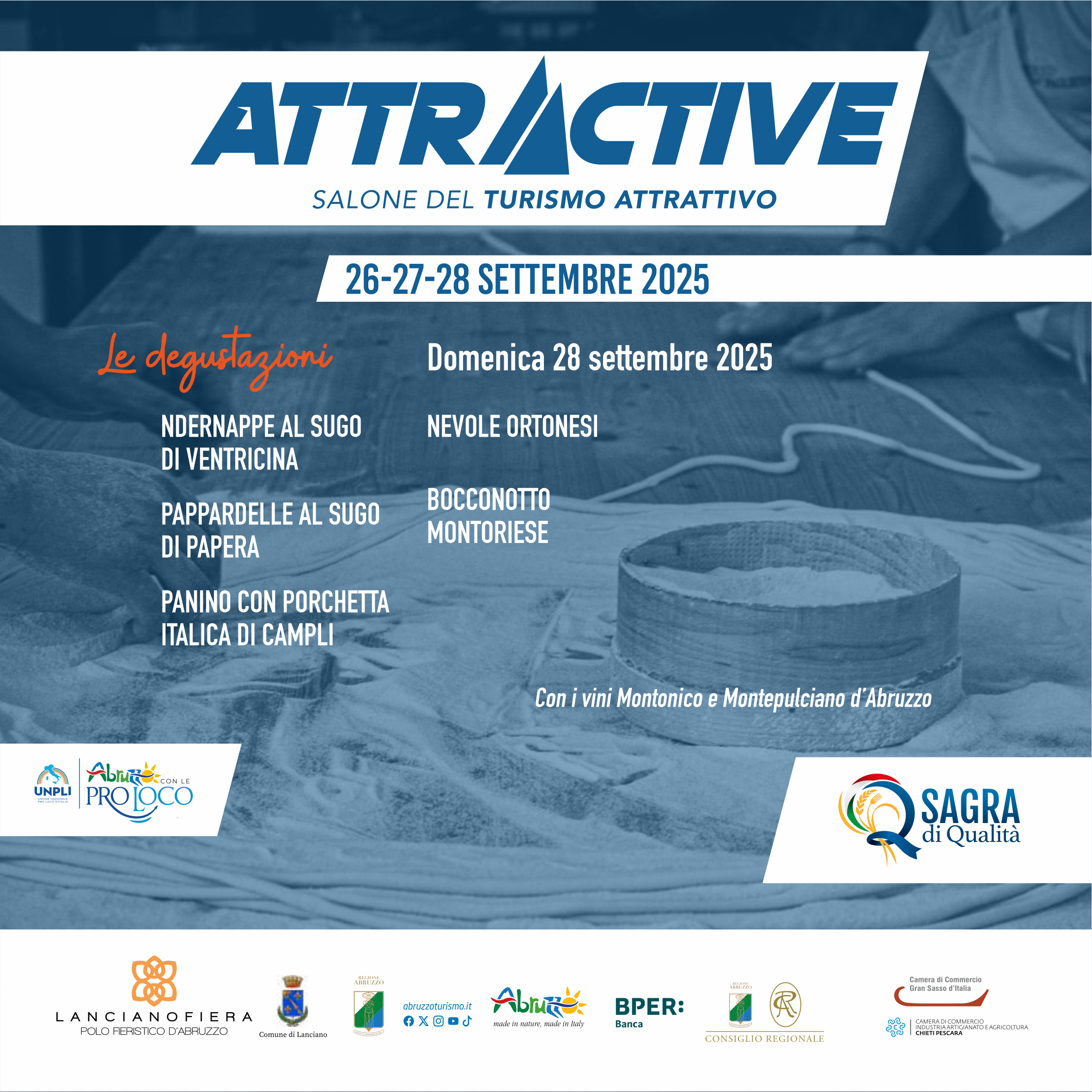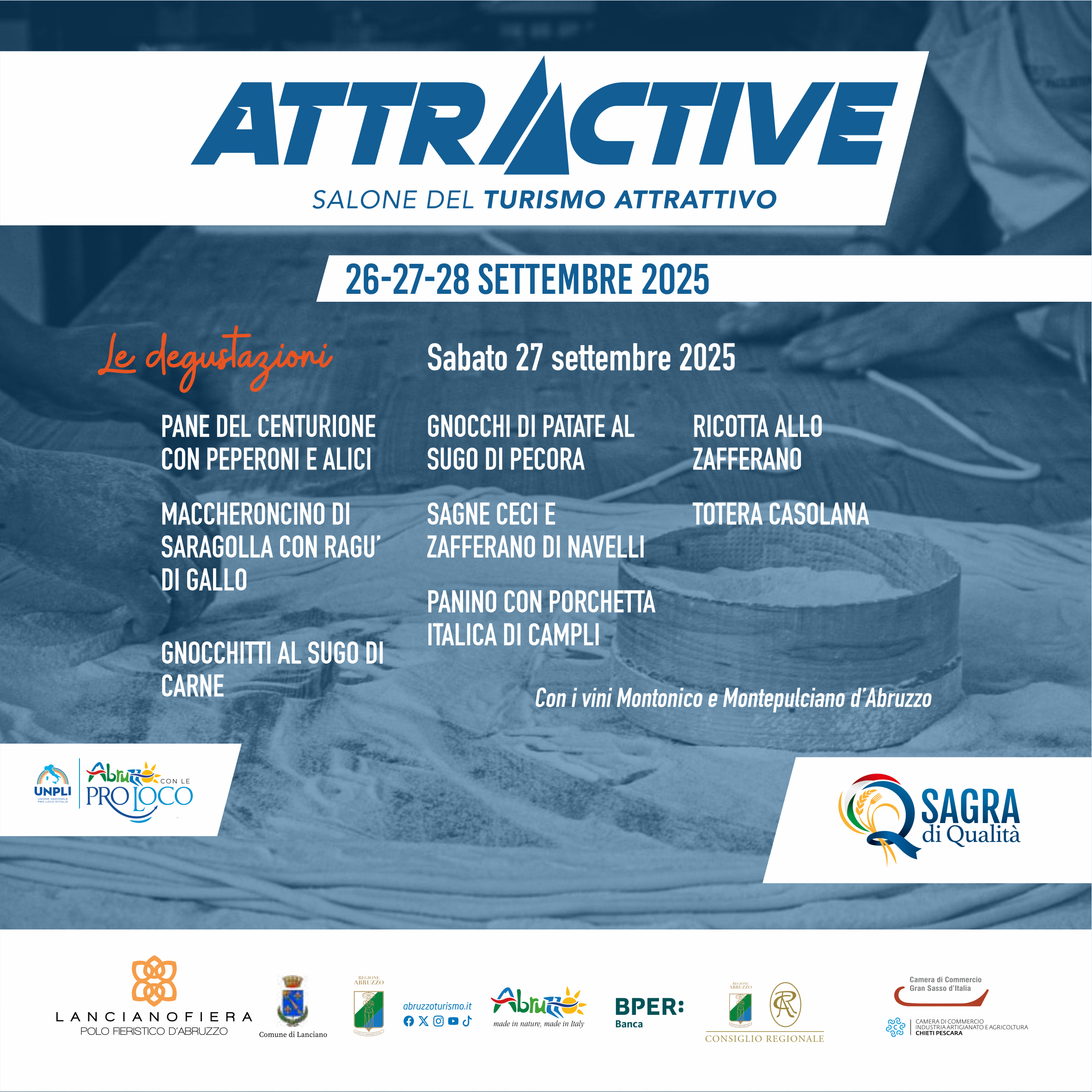 Attractive è la prima fiera dedicata al turismo attrattivo dell’Abruzzo. E’ in programma a Lanciano (Chieti), polo fieristico Lancianofiera, da venerdì 26 a domenica 28 settembre prossimi.