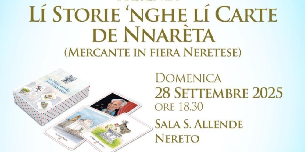 Presentazione del mercante in fiera in versione neretese. Le carte rigorosamente in dialetto locale raffigurano personaggi, storia, cultura, tradizioni e gastronomia di Nereto. Evento a cura della Pro Loco di Nereto APS.